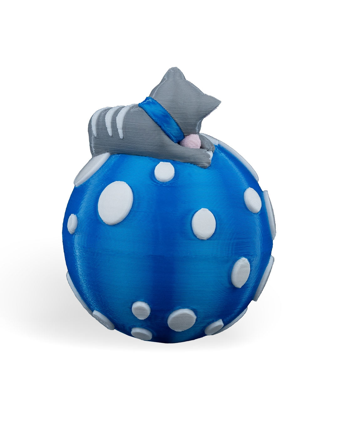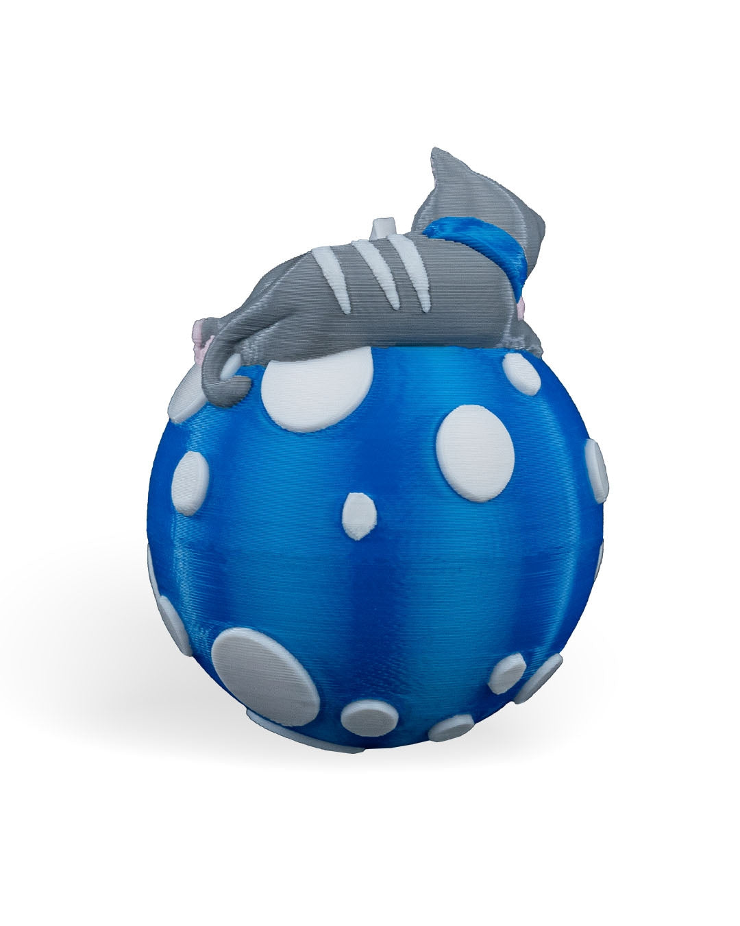 Adorable sleeping cat, that will add a festive glow to your tree, without all the shedding and hairballs. We cannot guarantee this cat will not come alive, and destroy things. If you have seen our business card, you would understand the shenanigans we are up to.
